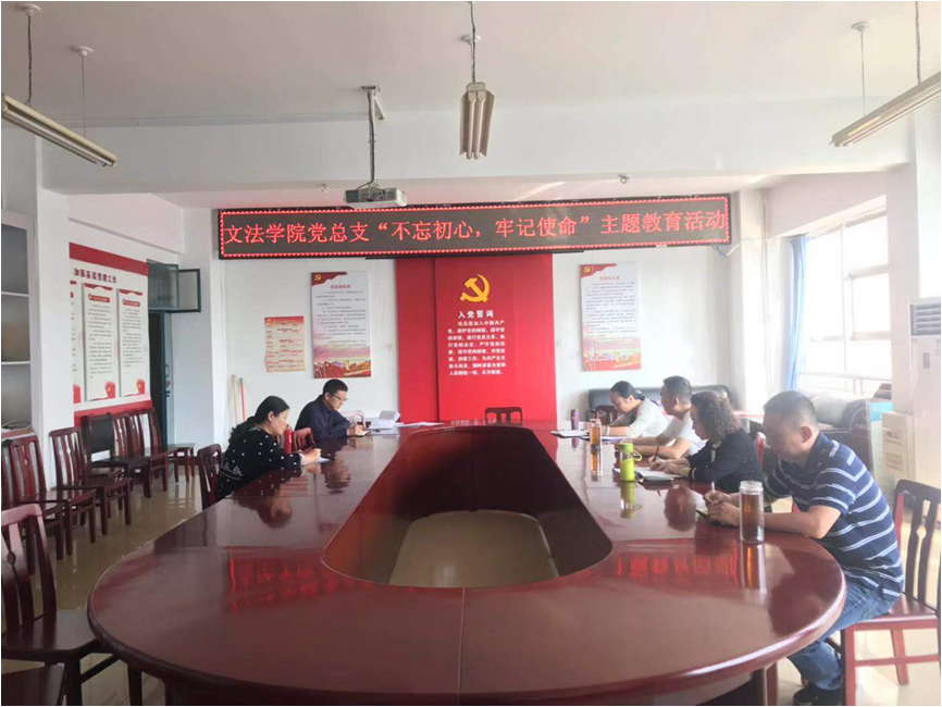 9月18日下午,文法学院党总支在A10-311教室组织开展“不忘初心、牢记使命”主题教育集中学习,学院领导班子成员和党总支委员参加学习。