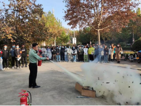 在教官进行疏散逃生知识教育之后,消防应急疏散演练正式开始。在听到指令后,全体学生迅速起身,弯腰前行,用手捂住口鼻,沿着安全通道,有序快速地撤离教室,前往到所指定的疏散集中地点。在全体学生抵达指定疏散集中地后,教官又详细地介绍了灭火器的使用方法与步骤,并让同学们现场操作,同时指出操作过程中的不当之处,增强了同学们的扑灭初期火灾的能力。