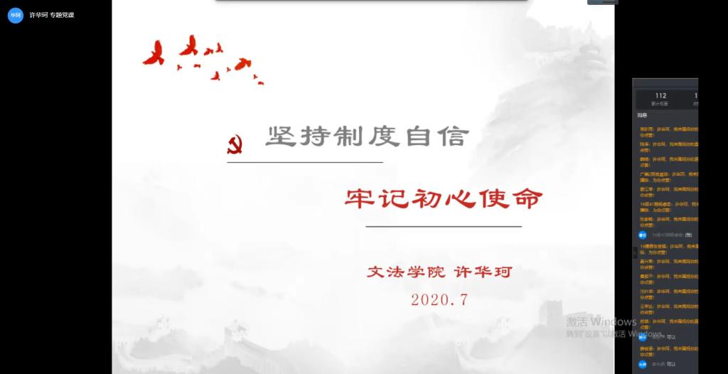 文法学院党总支副书记许华珂通过线上形式讲党课