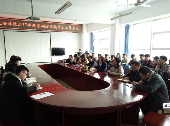 为宣传普及防诈骗安全知识,提高学生的安全防范意识,2月28日下午,文法学院在会议室召开了2017年新学期防诈骗学生工作会议。文法学院党总支书记张琳出席会议,全体辅导员老师以及各年级各班学生干部共计六十余人参加会议。会议由学院团总支书记许华珂老师主持。