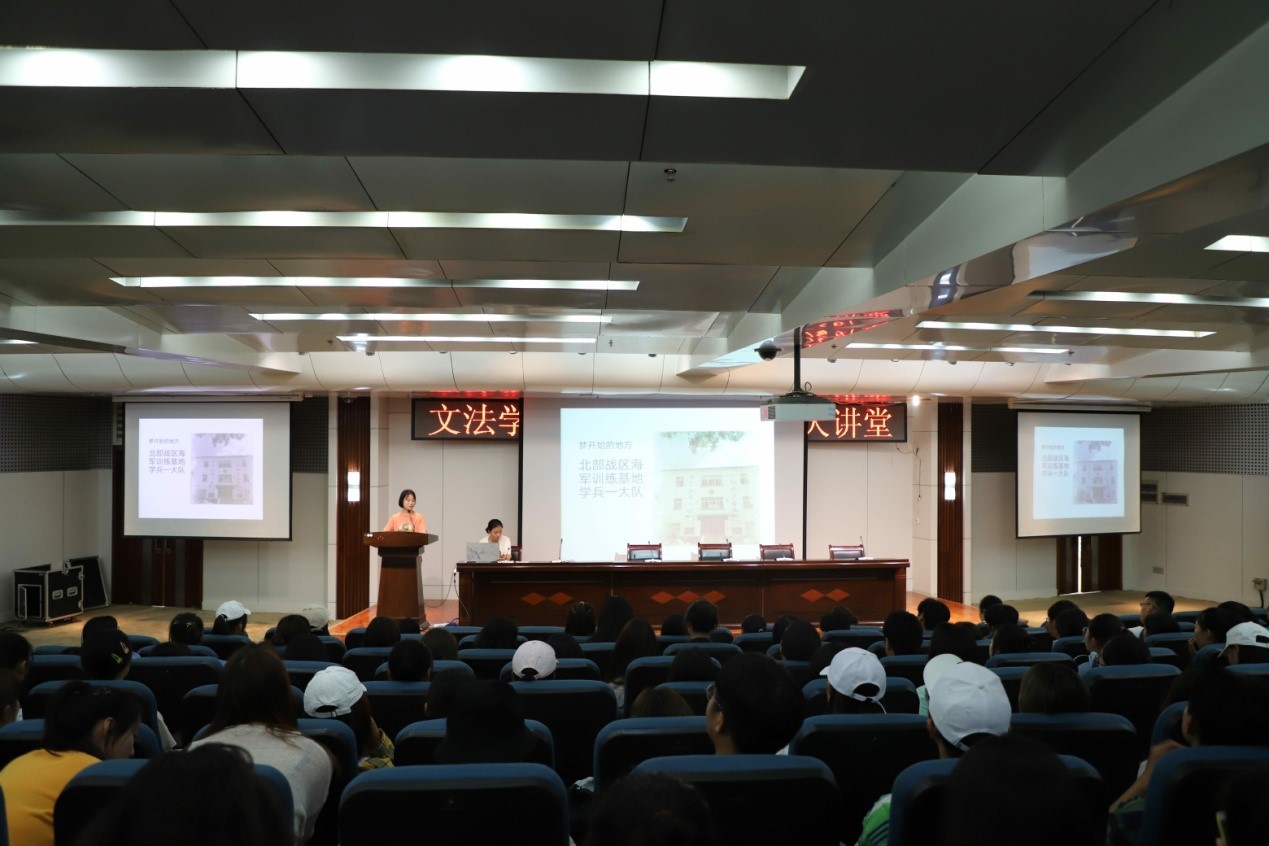近日,文法学院举办了第十八期《身边的榜样》大讲堂。本次大讲堂的主讲人段飞凡和董小婷分别以《退伍不褪色,我希望自己一直是那个负重前行的人》和《感谢你部队,让我看到了不一样的自己》为题,向200余名新生分享了自己的参军经历。