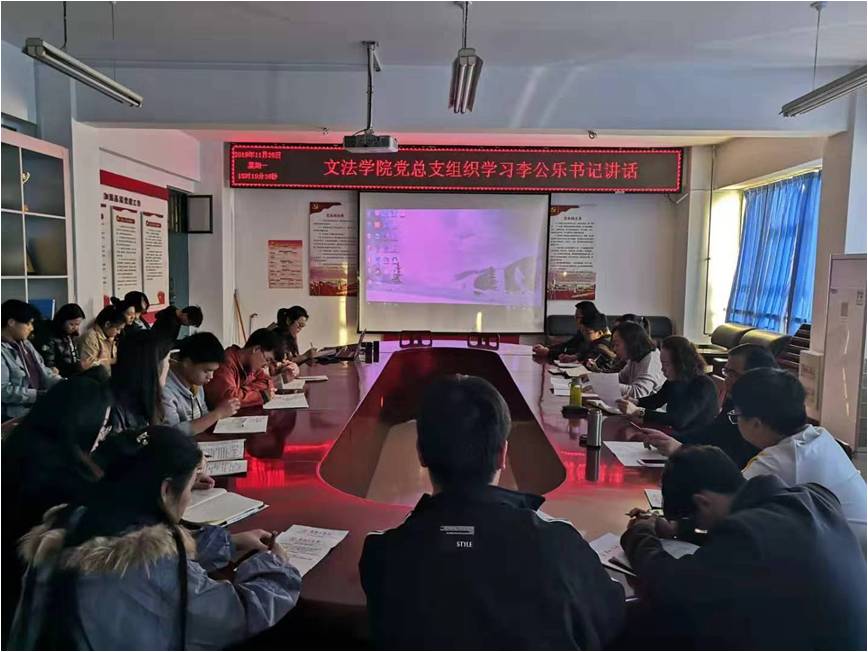 11月25日下午,文法学院党总支组织师生党员在党建活动室学习《李公乐书记在永利yl23411集团主题教育专题党课上的讲话》。会议由党总支书记张琳主持,全体师生党员参加。