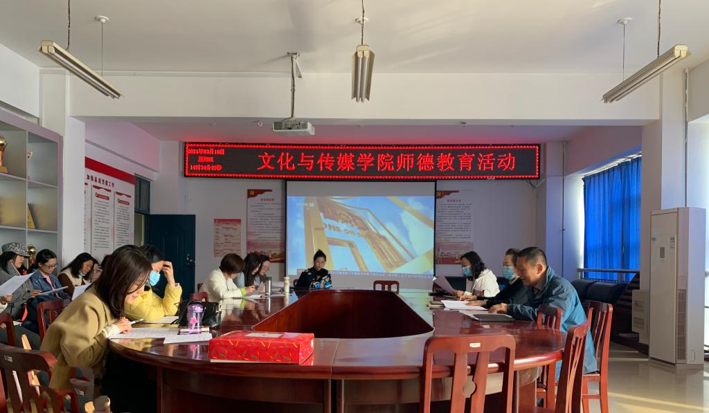 为进一步加强师德教育,落实“立德树人”根本任务,3月10日,文化与传媒学院在A10-311会议室召开2021年师德教育专题会议,学院领导班子成员、全体教师参加会议。