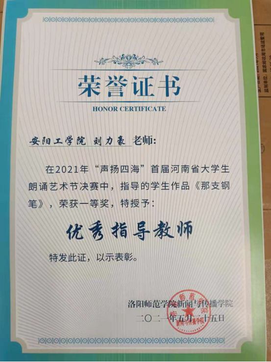 李洋同学的参赛作品为《那支钢笔》,由文化与传媒学院刘力豪老师进行培训、认真指导。比赛过程中,李洋同学积极备战,展现出优良的赛风赛纪,同时也做到了备战的长、精、细,在备战中不断升华自己的专业素养,在比赛中不断提升自己的专业技能,真正达到了“以赛促教,以赛促学,以赛促改”的效果。
