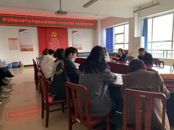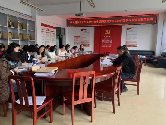 10月20日,文化与传媒学院全体教师在A10-311会议室进行了学习贯彻习近平总书记给全国高校黄大年式教师团队代表重要回信精神,党总支书记张琳主持学习会,余锐副院长,党总支副书记许华珂出席会议。
