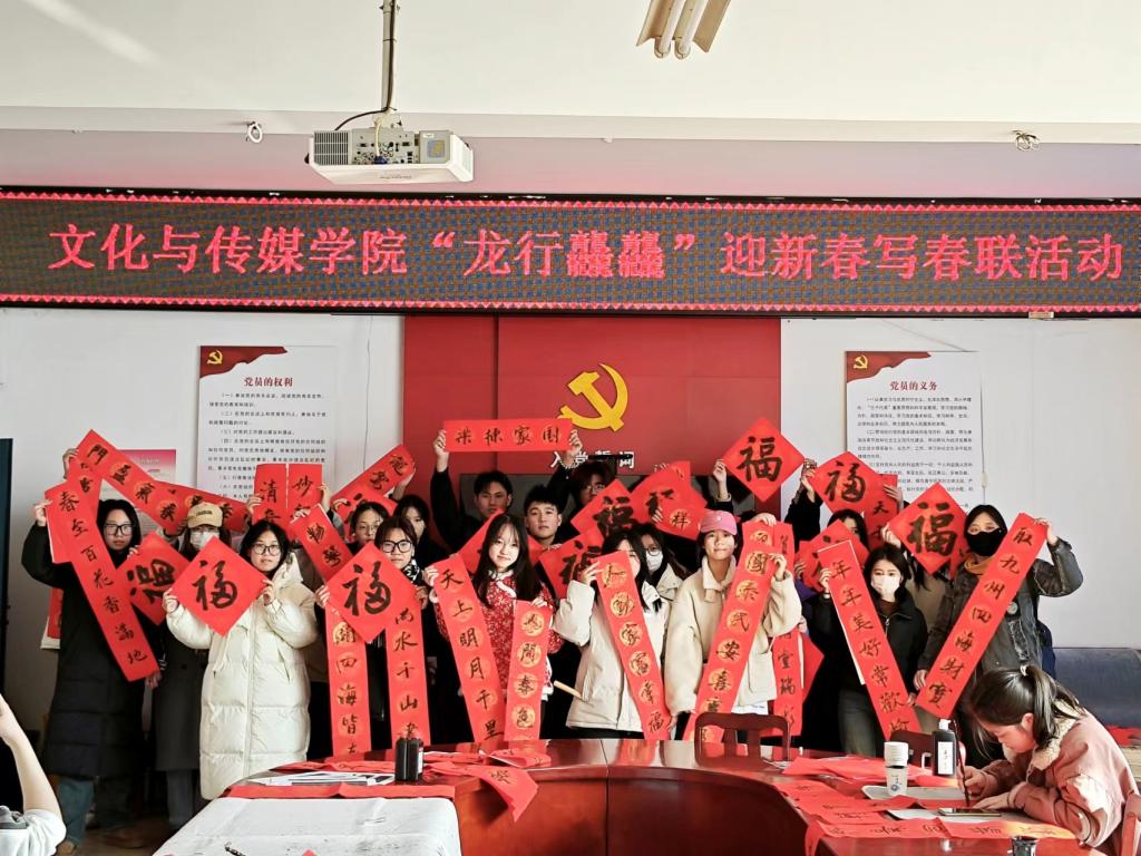 为弘扬中华优秀传统文化,丰富校园文化生活,1月3日,文化与传媒学院在A10-311会议室举办了“龙行龘龘”迎新春写春联活动。学生第一党支部书记张森林组织50余名师生参加。