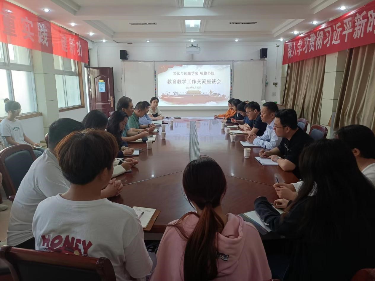 5月23日,文化与传媒学院到明德书院召开教育教学工作交流座谈会。文化与传媒学院领导班子、明德书院领导班子及师生代表参加座谈会。